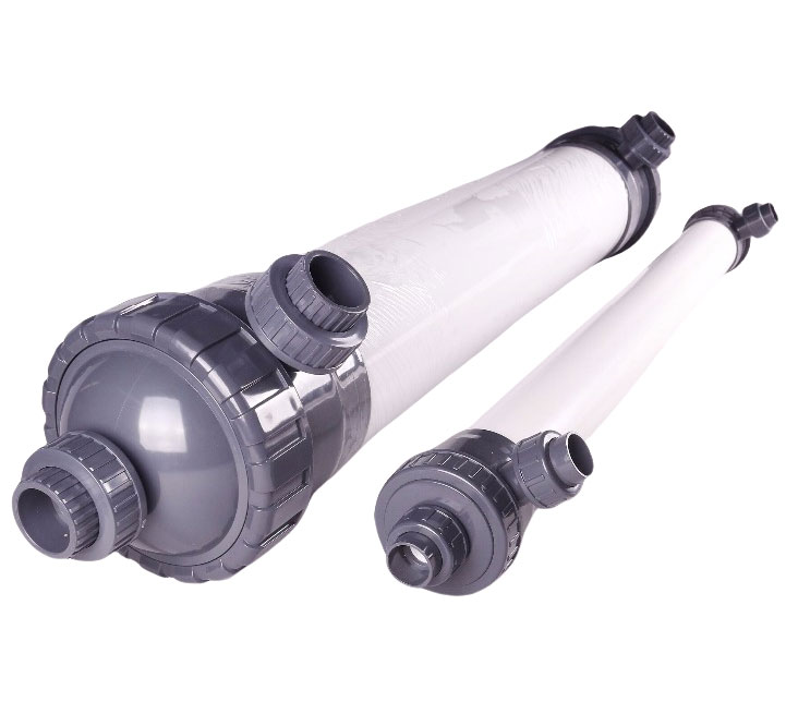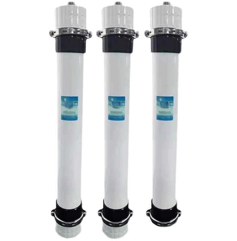 PVDF中空纖維超濾膜具備耐氧化、耐老化、耐化學(xué)性、抗污染等優(yōu)良特性,PVDF膜絲經(jīng)過特殊的親水化處理,大大增強(qiáng)了膜的親水性,使膜絲具有更高透水通量的同時(shí),延長(zhǎng)了膜的使用壽命,進(jìn)一步增強(qiáng)了膜的抗污染性。 超濾是以篩分原理為主的過濾分離單元,具有過濾精度高、可適用于各種不同水質(zhì)的特點(diǎn)。經(jīng)過多年的應(yīng)用推廣,在工業(yè)廢水、生活污水、中水回用、飲用水、工業(yè)生產(chǎn)工藝用水、純水超純水預(yù)處理領(lǐng)域中已有廣泛的應(yīng)用。