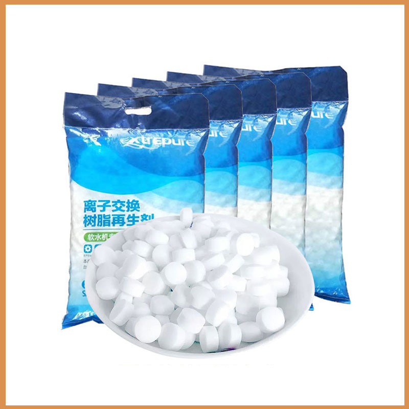 軟水機(jī)專用鹽,又名離子交換樹脂再生劑。其主要化學(xué)成分為氯化鈉(NaCl),由于軟水機(jī)的日常維護(hù)和樹脂還原需要,要求含量在99.5%以上,一般形狀為球劑。