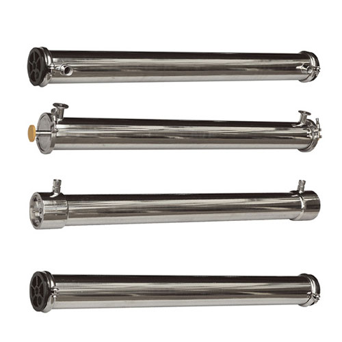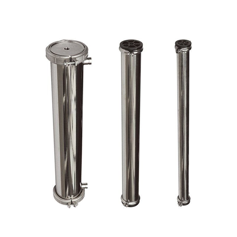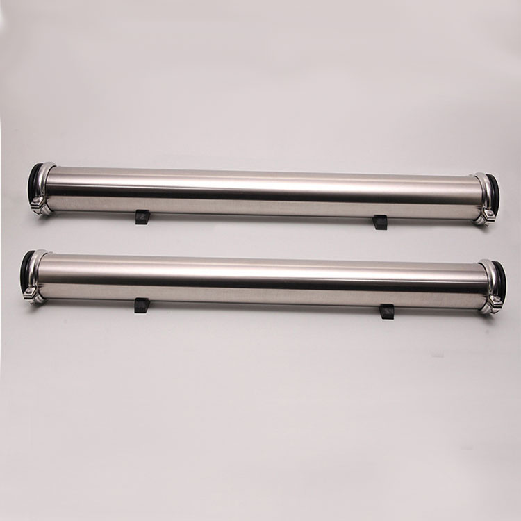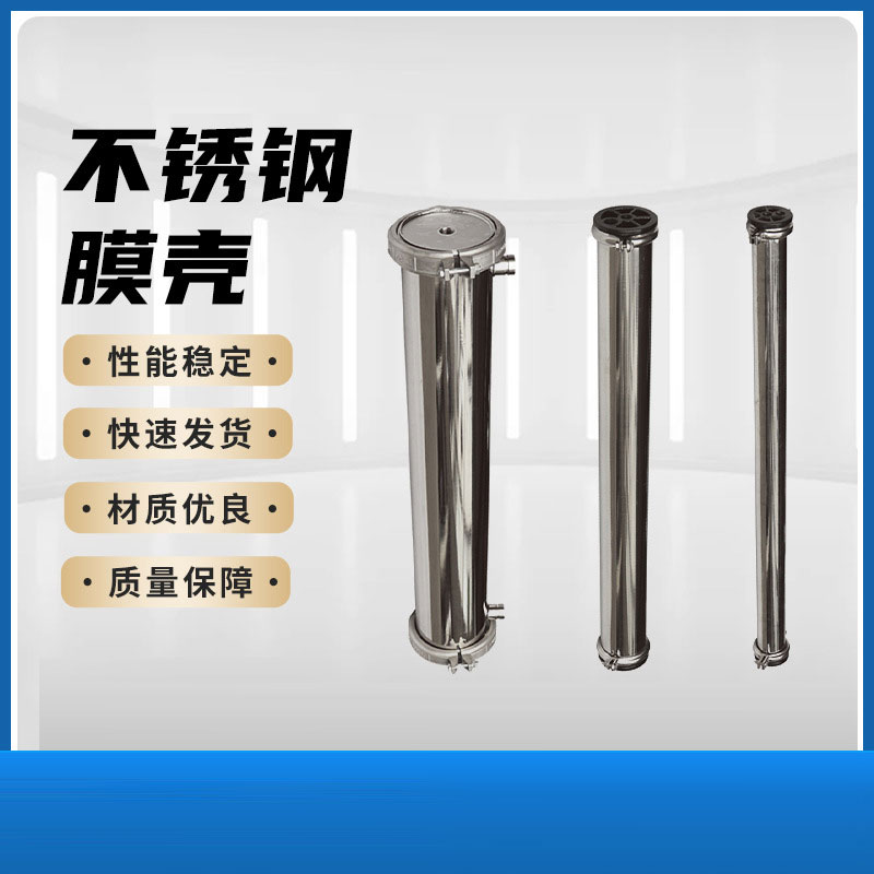 8040膜殼:分卡套和端蓋式兩種,采用SUS304無(wú)縫不銹鋼管制成,密封性能好,耐壓高,不會(huì)老化,安裝、清洗膜方便,工作壓力(Mpa):4.0。膜殼進(jìn)出水口可根據(jù)客戶要求,端進(jìn)(出)或側(cè)進(jìn)(出)。不銹鋼膜殼有2.5寸、4寸、8寸等、